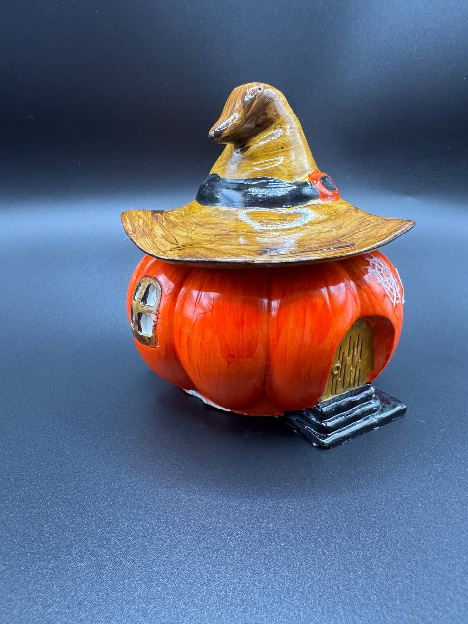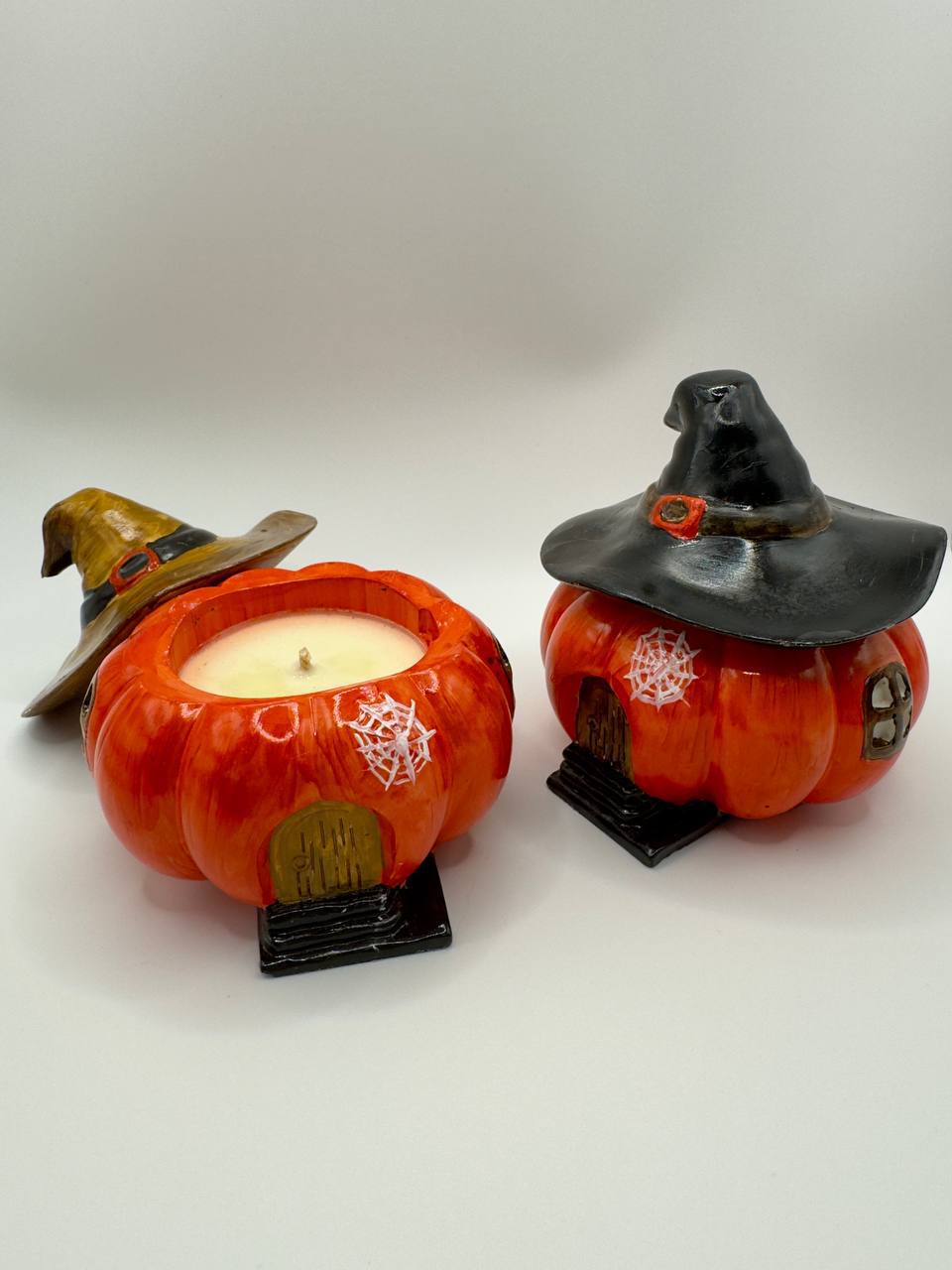 Эта уютная свеча в форме яркой тыквы с дверцей и колпаком ведьмы — настоящее украшение осеннего интерьера. Она создаст атмосферу тепла и волшебства в вашем доме, напомнит о таинственных вечерах и праздничном настроении Хэллоуина.