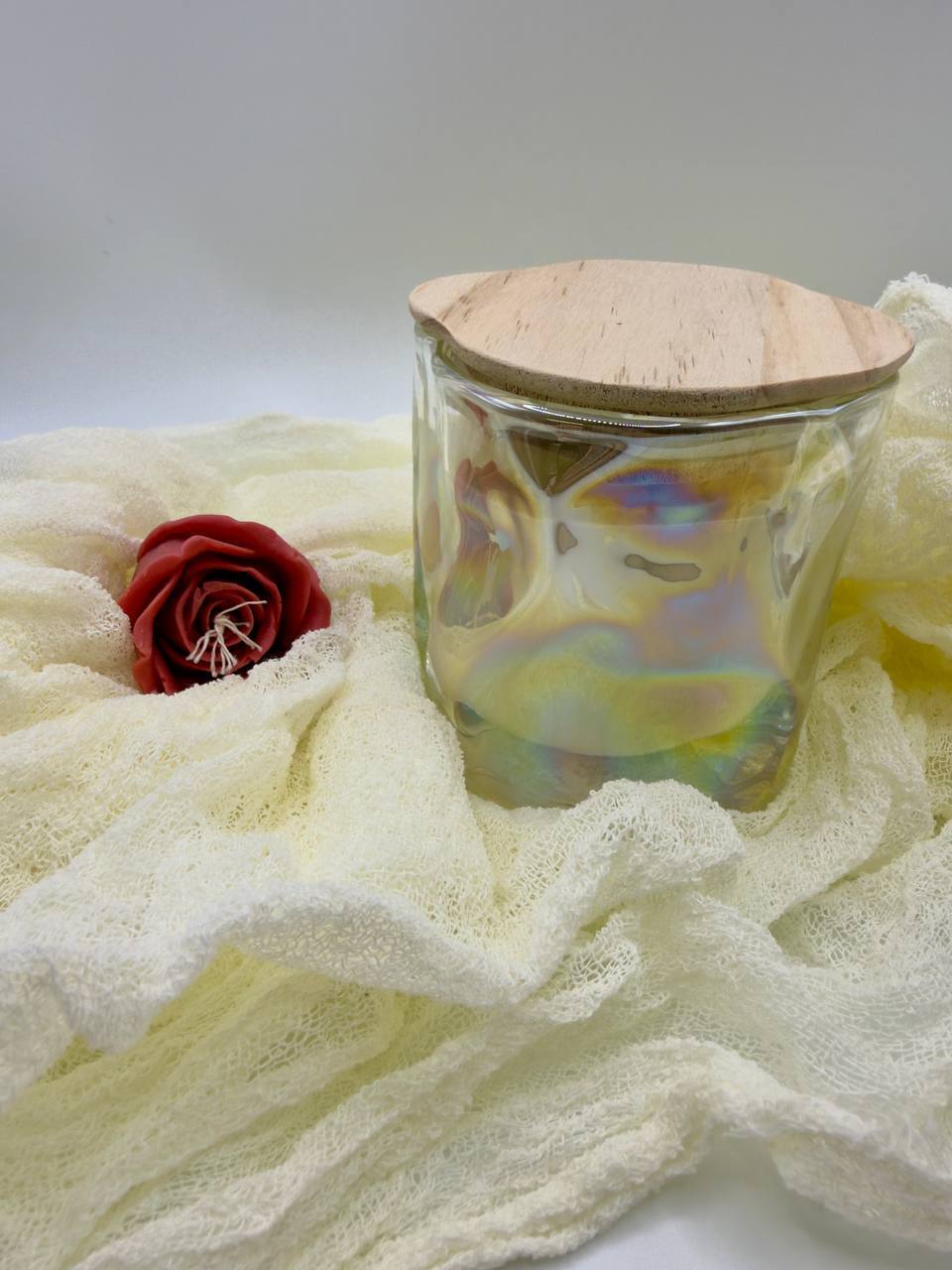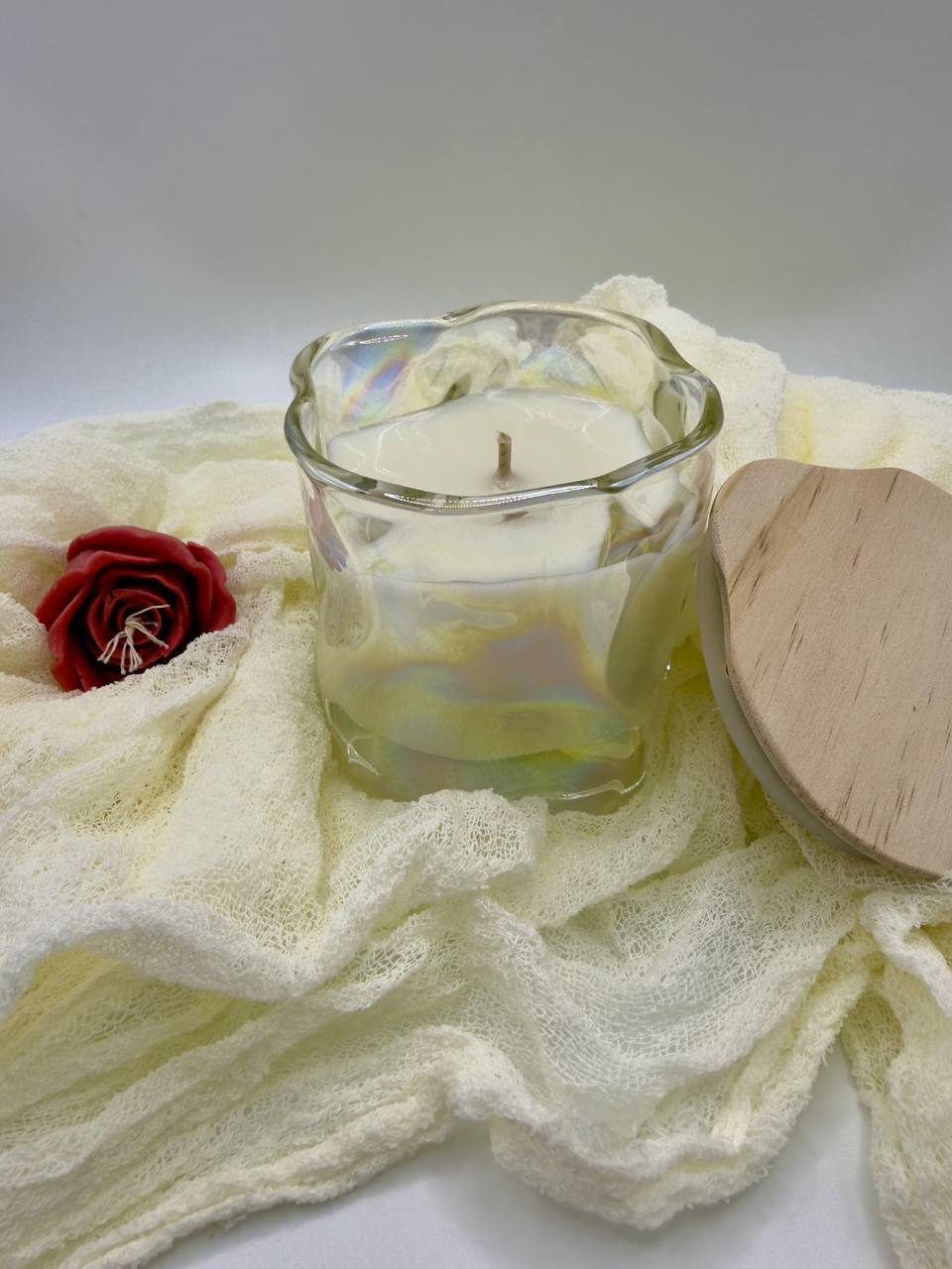 Эта свеча в мятом стекле — маленький шедевр в рустикальном стиле. Неровная поверхность стакана создаёт ощущение ручной работы, а мягкий цвет добавляет свежести и лёгкости в интерьер. Когда зажигается фитиль, тёплый свет играет на изгибах стекла, превращая свечу в уютный акцент в вашем доме. Идеальна для спокойных вечеров, медитации или ароматного отдыха.
