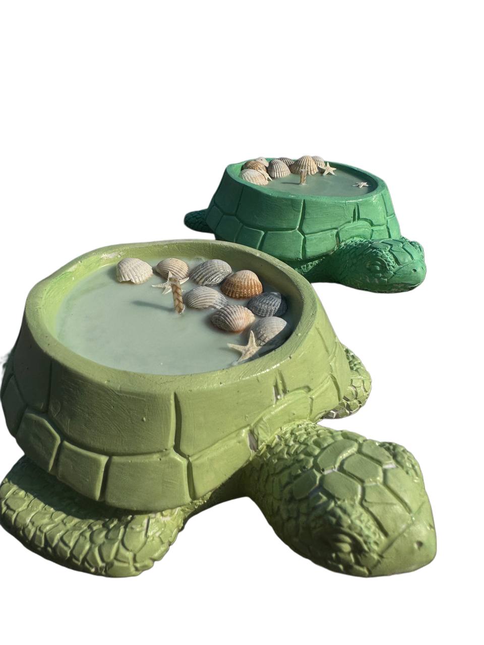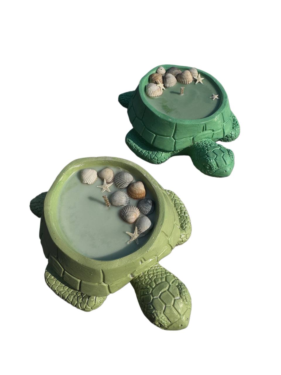 Эта уникальная свеча, выполненная в форме черепахи, украшена ракушками и морскими звездами, напоминая о морских путешествиях. Зеленый воск символизирует глубины океана, а насыщенный морской аромат перенесет вас на побережье.