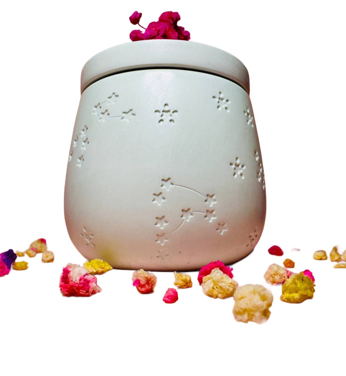 Эта свеча - это маленький кусочек космоса, который наполнит ваш дом теплом и уютом. Гипсовый подсвечник украшен изящными вырезами в виде созвездий. Представьте себя путешественником который блуждает по миру, и выбирает свой путь по звездам. Так и эта свеча поможет найти себя. А нежный аромат, напоминающий запах свободы, поможет вам расслабиться и погрузиться в мечты о далеких галактиках. Идеальный подарок для мечтателей и ценителей прекрасного.