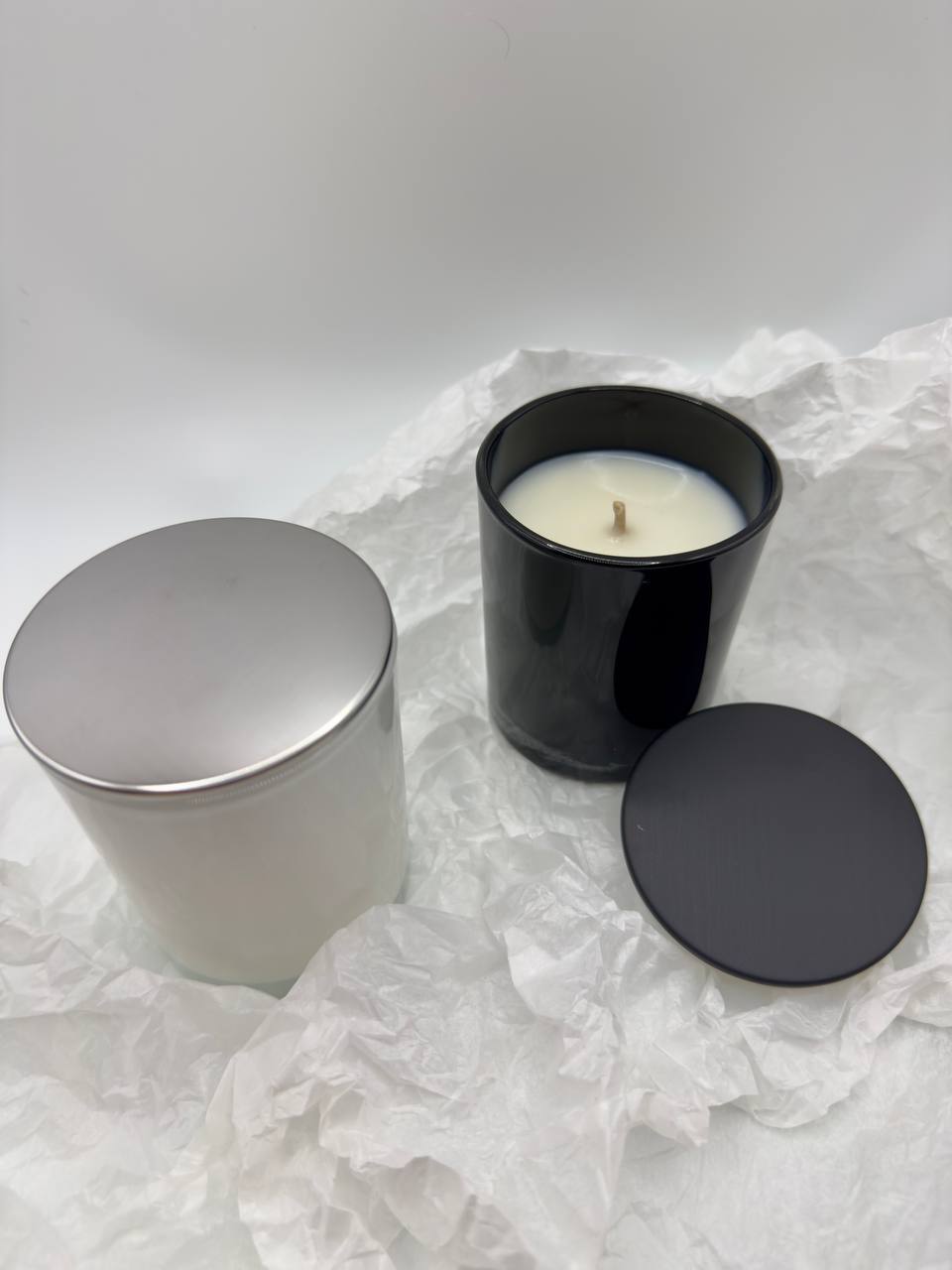 Свеча в черном глянцевом стакане — контраст и глубина в минимализме. Стильная лаконичность формы подчёркивает атмосферу спокойной роскоши и современного дизайна.